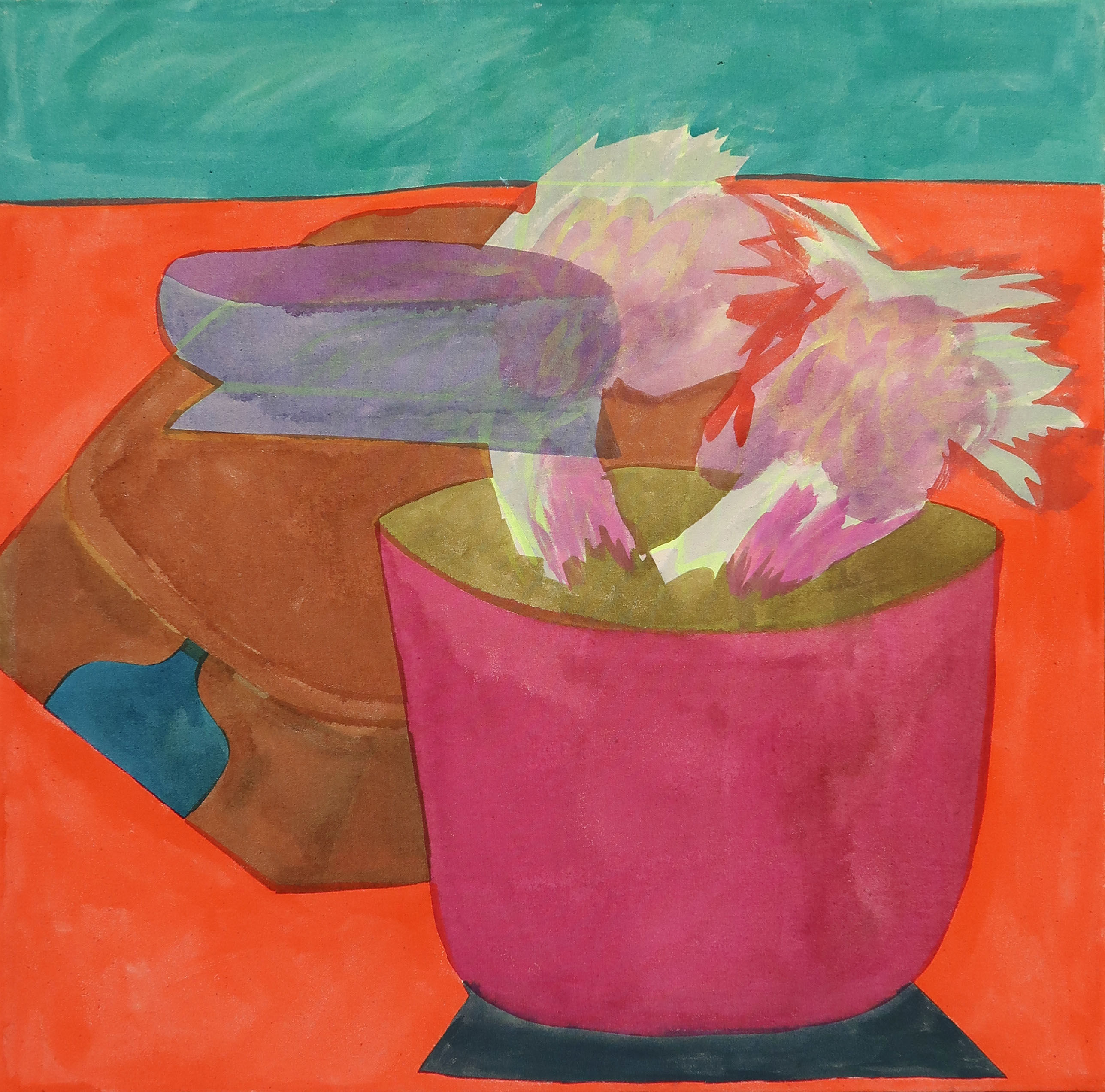 SG: Everything serves color and its application. Forms are necessary as vessels, but they exist in support of chromatic presence. Pigments possess their own momentum and often escape rational control. My sensitivity to tonal relationships and neighboring hues is deeply rooted within me. Exploring and reinventing combinations is my greatest passion and one of the reasons for my chosen media.